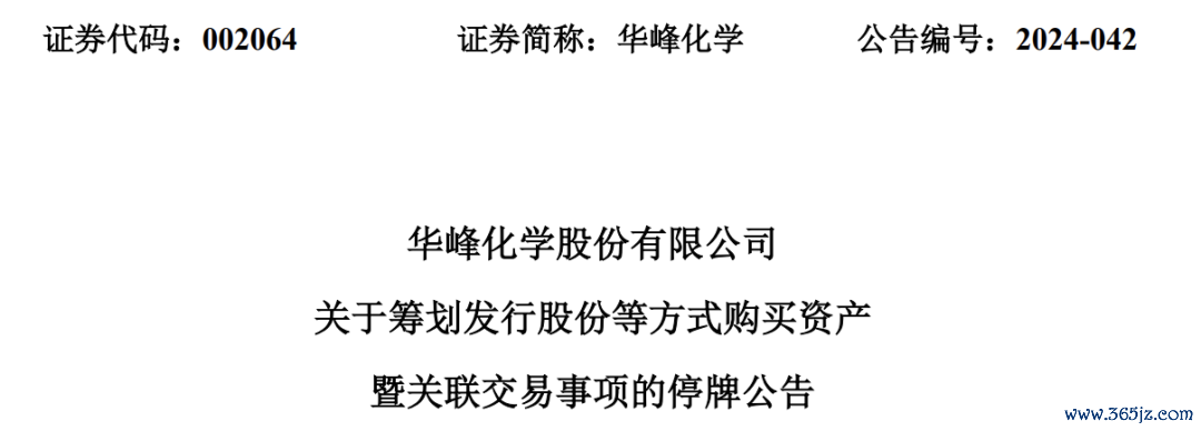 2024年10月29日,华峰化学公告,公司筹划发行股份等方式购买华峰集团有限公司(简称“华峰集团”)持有的华峰热塑100%股权,以及华峰集团、尤小平、尤金焕、尤小华共同持有的华峰合成树脂100%股权。由于华峰集团为公司控股股东,尤小平为公司实际控制人,尤金焕、尤小华为公司关联自然人,本次交易构成关联交易。